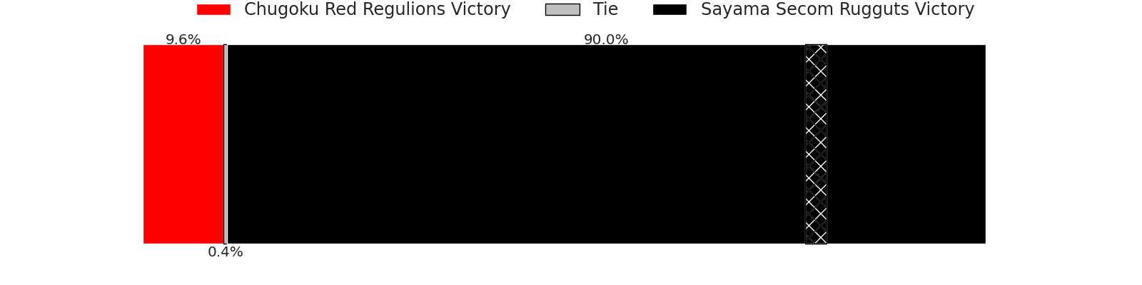 Now that the game has been played, lets see how the club predictions did. I predicted Sayama Secom Rugguts to win by 21.96, and Sayama Secom Rugguts won by 26.0. That’s an absolute error of 4.0 for the margin of victory, while my average absolute error has been 14.0 over the past six months. This prediction was more accurate than 80.1% of my recent predictions.