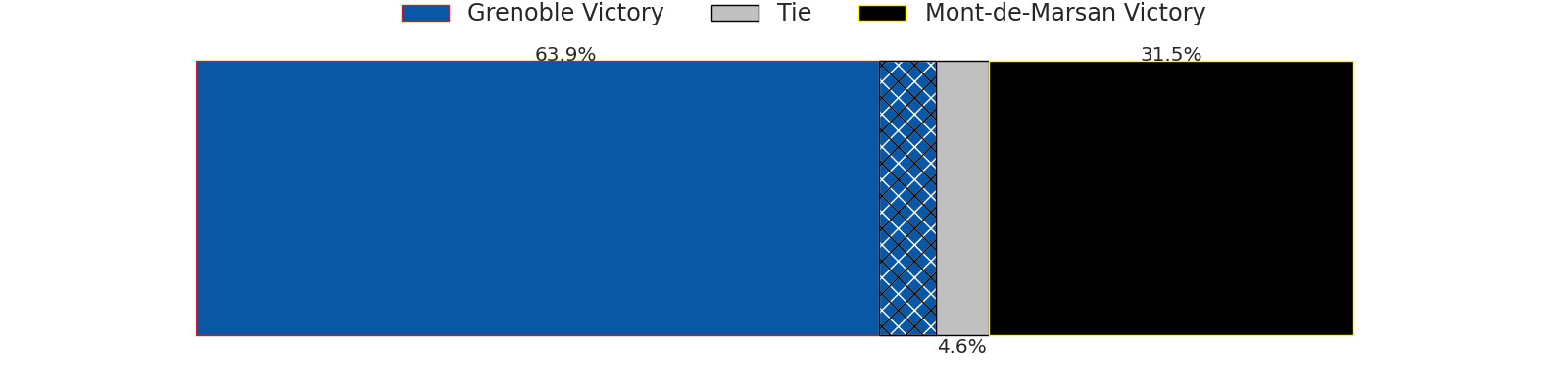 Now that the game has been played, lets see how the club predictions did. I predicted Grenoble to win by 8.01, and Grenoble won by 1.0. That’s an absolute error of 7.0 for the margin of victory, while my average absolute error has been 14.0 over the past six months. This prediction was more accurate than 64.7% of my recent predictions.