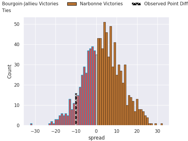 Now that the game has been played, lets see how the club predictions did. I predicted Narbonne to win by 5.78, and Bourgoin-Jallieu won by 10.0. That’s an absolute error of 15.8 for the margin of victory, while my average absolute error has been 14.0 over the past six months. This prediction was more accurate than 33.4% of my recent predictions.