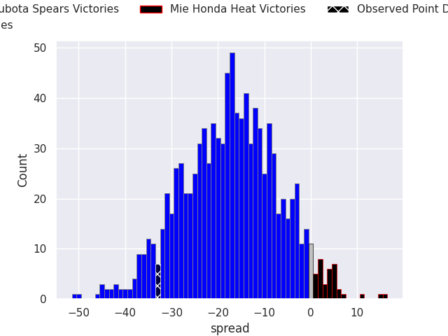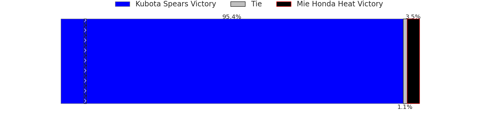 With the player model, I predicted Kubota Spears to win by 17.33, and Kubota Spears won by 33.0. That’s an absolute error of 15.7 for the margin of victory, while the average error as been 14.0 for the past six months. So this prediction was more accurate than 29.4% of my recent predictions.