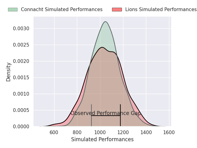 With the player model, I predicted Connacht to win by 0.23, and Lions won by 12.0. That’s an absolute error of 12.2 for the margin of victory, while the average error as been 14.0 for the past six months. So this prediction was more accurate than 38.0% of my recent predictions.