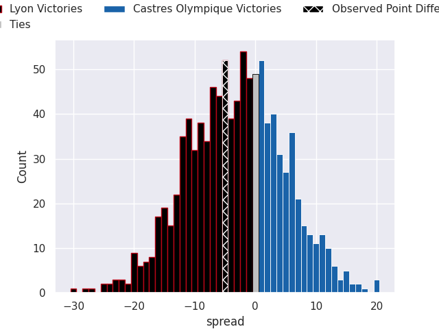 With the player model, I predicted Lyon to win by 3.22, and Lyon won by 5.0. That’s an absolute error of 1.8 for the margin of victory, while the average error as been 14.0 for the past six months. So this prediction was more accurate than 80.3% of my recent predictions.