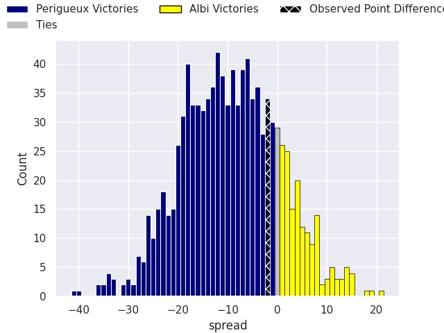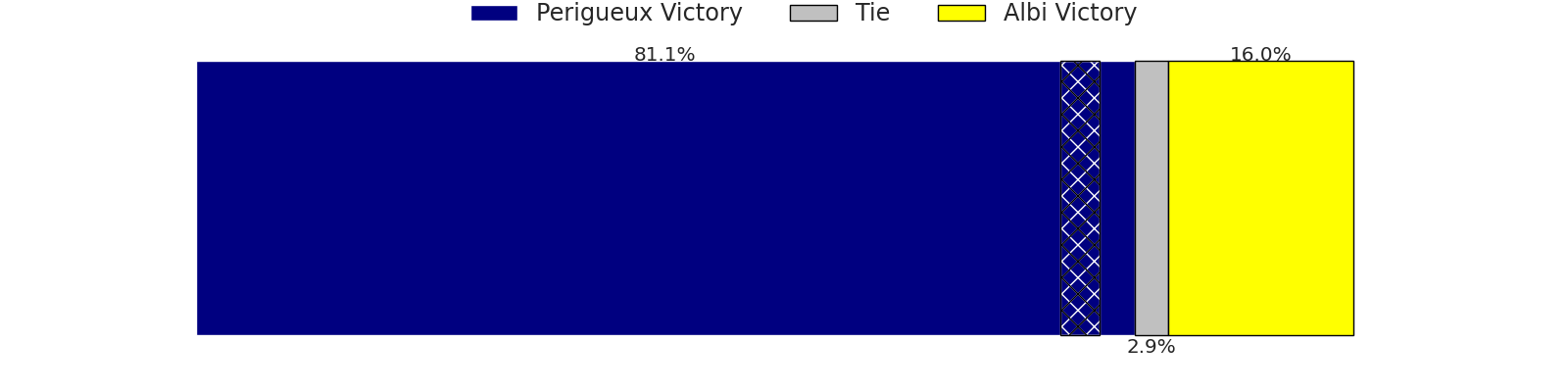Now that the game has been played, lets see how the club predictions did. I predicted Perigueux to win by 4.28, and Perigueux won by 2.0. That’s an absolute error of 2.3 for the margin of victory, while my average absolute error has been 14.0 over the past six months. This prediction was more accurate than 87.9% of my recent predictions.